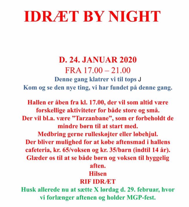 Så er der igen Idræt by Night. Alle er velkommen og det koster ikke noget.